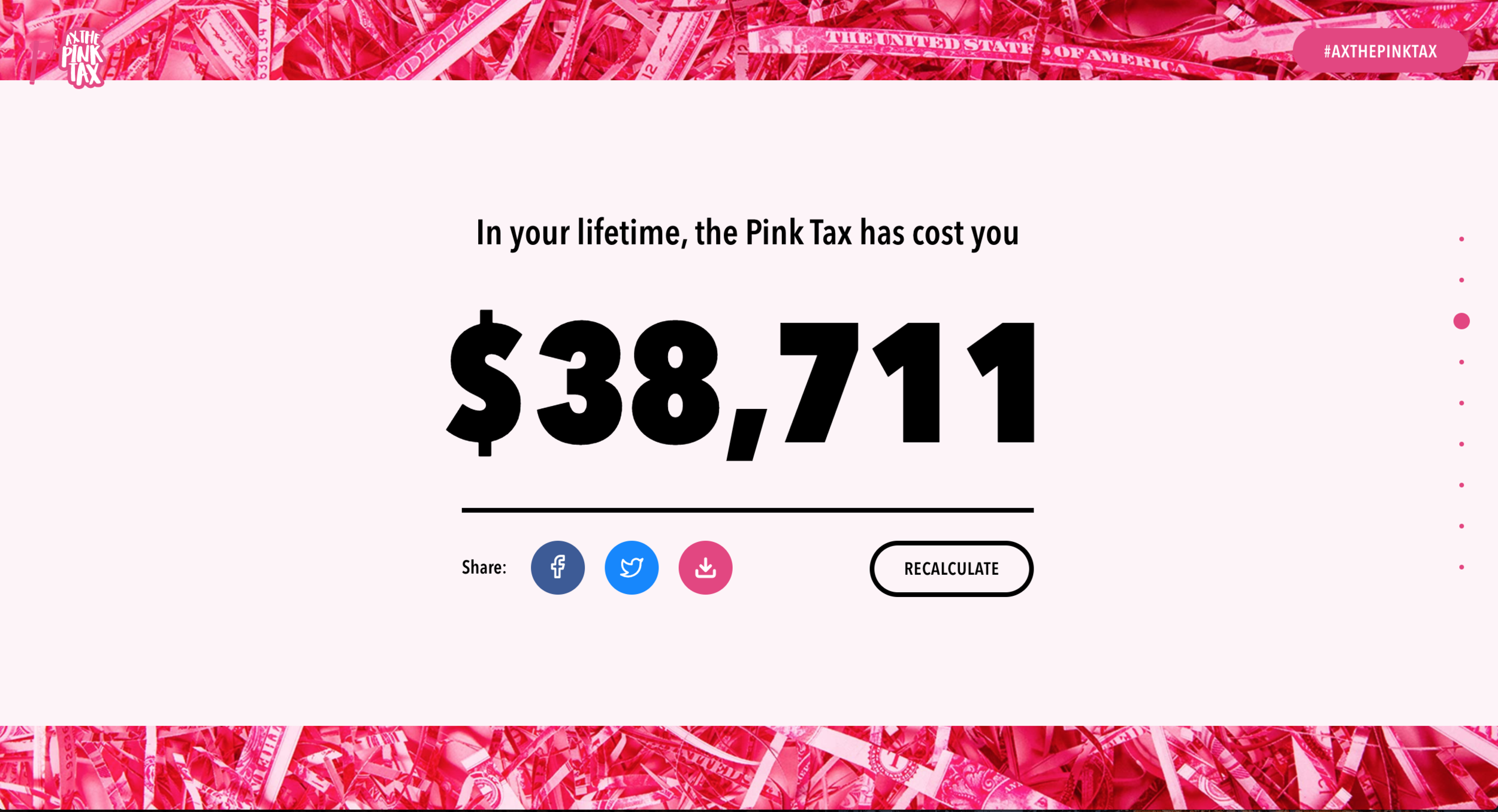 We also created a dedicated microsite to serve as a hub for all Pink Tax resources, tools, and information, including a calculator that shows to the dollar amount, how much the Pink Tax costs women in their lifetimes.